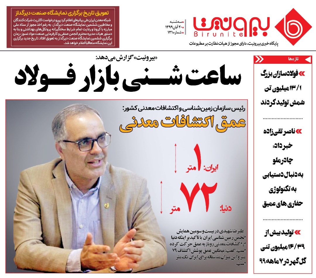 وی با تاکید بر اینکه در حال حاضر دنیا به اکتشاف معادن روباز به سمت اکتشافات معادن زیر زمینی به پیش رفته است، یادآور شد: میانگین عمق پوشش اکتشاف ۷۹ متر و این میزان برای ایران یک متر است و این عدد ناگواری است، ضمن آنکه عمق اکتشافات حدود ۳۰۰ تا ۴۰۰ متری برآورد شده است.
