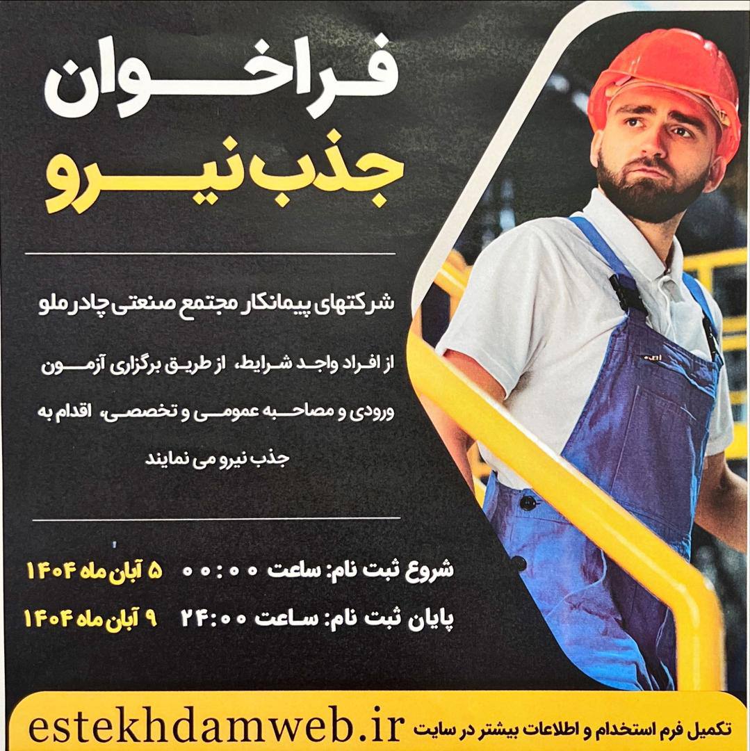 شرکت‌های پیمانکار مجتمع صنعتی چادرملو از افراد واجد شرایط، از طریق برگزاری آزمون ورودی و مصاحبه عمومی و تخصصی، اقدام به جذب نیرو می‌نماید.
