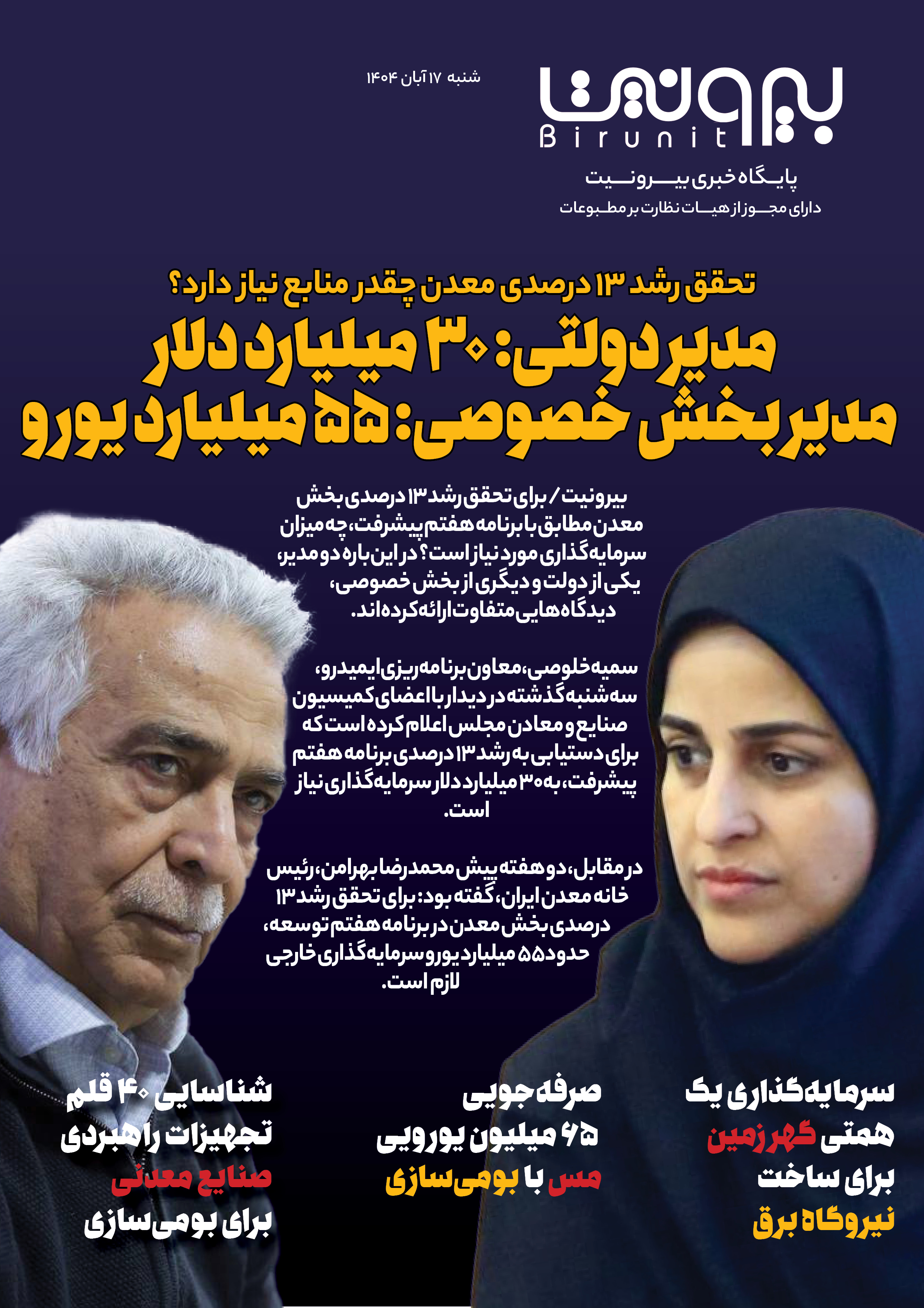 در مقابل، دو هفته پیش محمدرضا بهرامن، رئیس خانه معدن ایران، گفته بود: برای تحقق رشد ۱۳ درصدی بخش معدن در برنامه هفتم توسعه، حدود ۵۵ میلیارد یورو سرمایهگذاری خارجی لازم است.