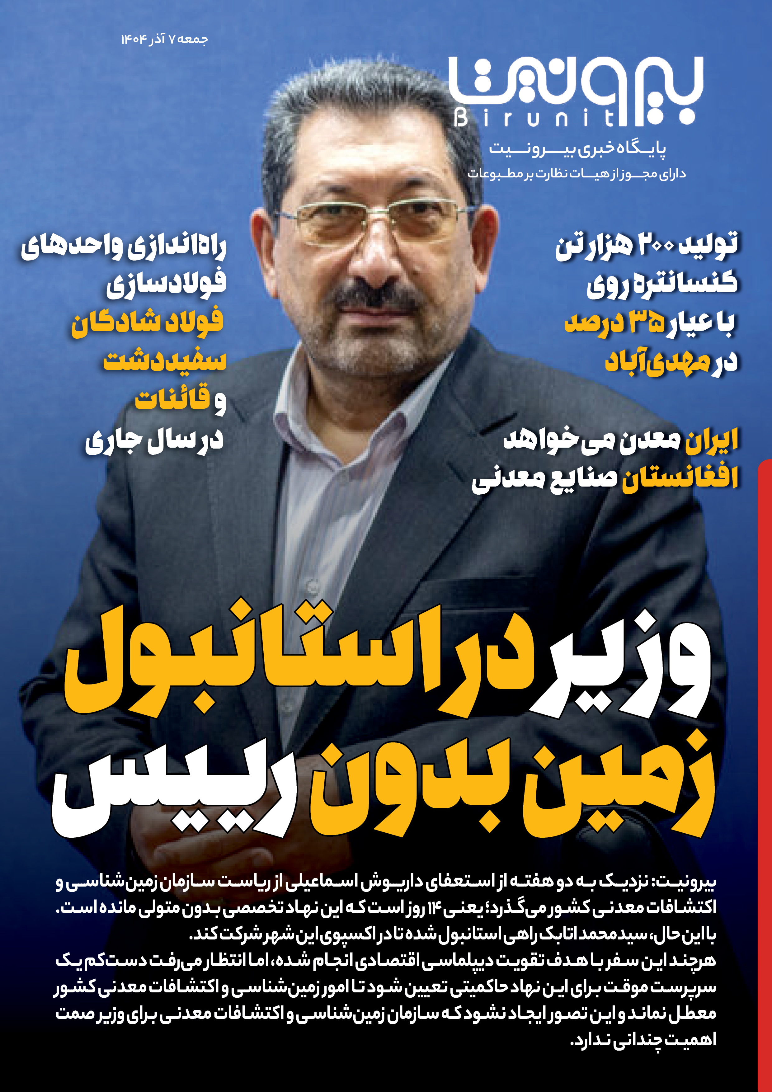 بیرونیت/ نزدیک به دو هفته از استعفای داریوش اسماعیلی از ریاست سازمان زمین‌شناسی و اکتشافات معدنی کشور می‌گذرد؛ یعنی ۱۴ روز است که این نهاد تخصصی بدون متولی مانده است. با این حال، سیدمحمد اتابک چند روزی است که راهی استانبول شده تا در اکسپوی این شهر شرکت کند.