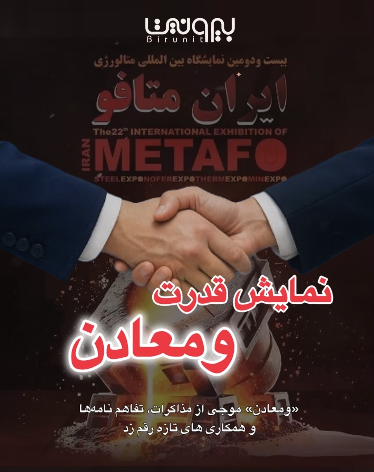 به گزارش بیرونیت، در دومین روز از نمایشگاه بینالمللی ایرانمتافو، مجموعهای از مذاکرات تخصصی، امضای تفاهمنامههای همکاری و عقد قراردادهای کاری میان شرکتهای زیرمجموعه هلدینگ سرمایهگذاری توسعه معادن و فلزات (ومعادن) انجام شد. این اقدامات با هدف تقویت پیوندهای تجاری، توسعه همکاریهای معدنی، فنی و مهندسی و پیشبرد برنامههای راهبردی این هلدینگ صورت گرفته است.
