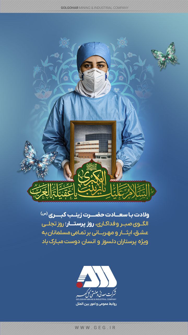 شرکت گلگهر سیرجان تولد حضرت زینب (س) و روز پرستار را تبریک گفت.