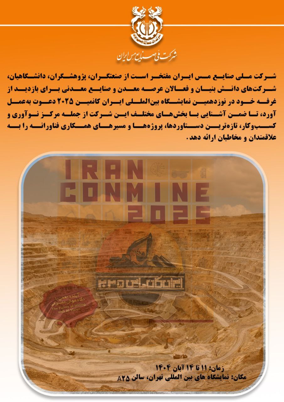 دعوت به بازدید از غرفه شرکت ملی صنایع مس ایران در نوزدهمین نمایشگاه بین‌المللی ایران کان‌مین ۲۰۲۵