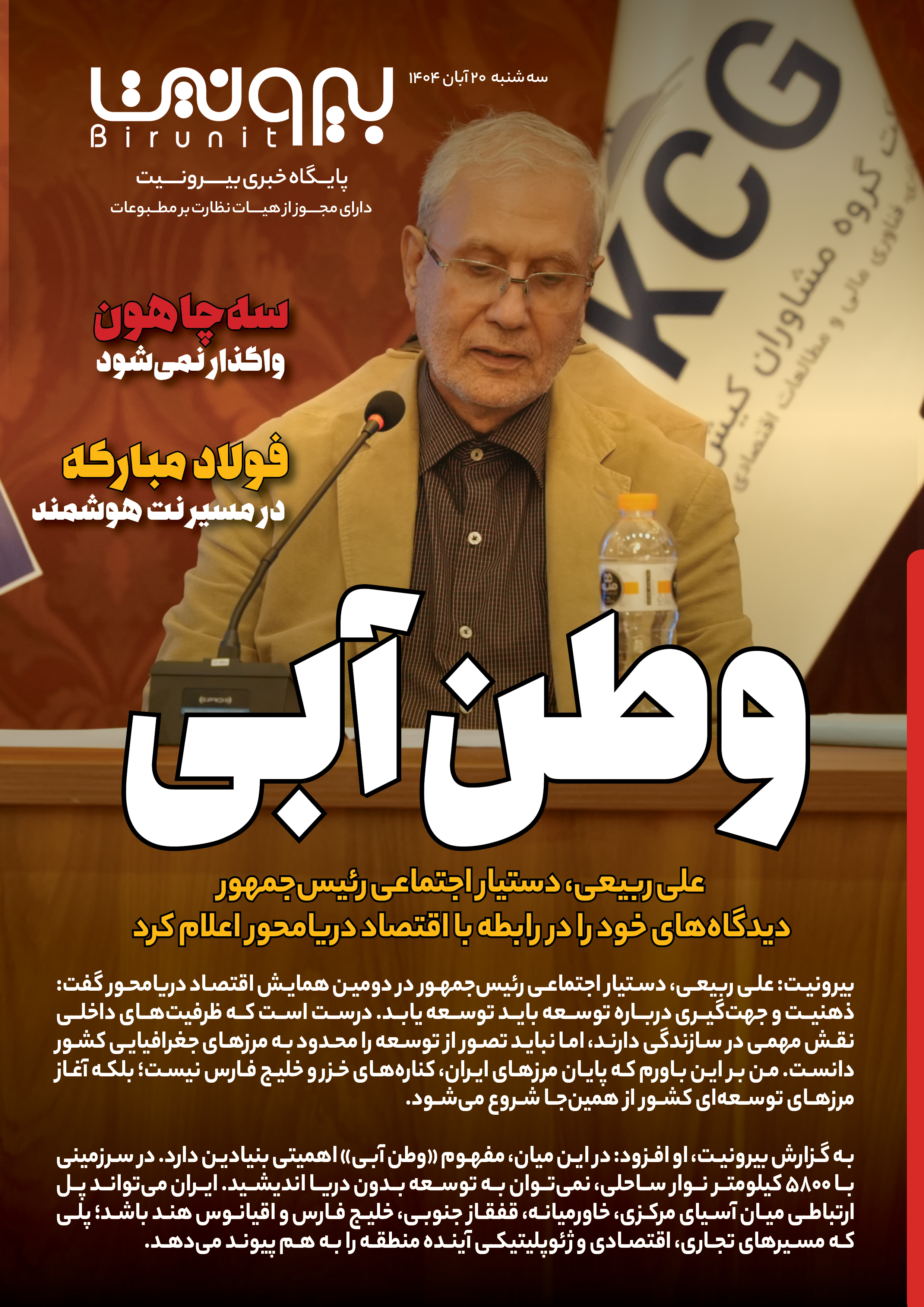 بیرونیت: علی ربیعی، دستیار اجتماعی رئیس‌جمهور در دومین همایش اقتصاد دریا‌محور گفت: ذهنیت و جهت‌گیری درباره توسعه باید توسعه یابد. درست است که ظرفیت‌های داخلی نقش مهمی در سازندگی دارند، اما نباید تصور از توسعه را محدود به مرزهای جغرافیایی کشور دانست. من بر این باورم که پایان مرزهای ایران، کناره‌های خزر و خلیج فارس نیست؛ بلکه آغاز مرزهای توسعه‌ای کشور از همین‌جا شروع می‌شود. به‌ گزارش بیرونیت، او افزود: در این میان، مفهوم «وطن آبی» اهمیتی بنیادین دارد. در سرزمینی با ۵۸۰۰ کیلومتر نوار ساحلی، نمی‌توان به توسعه بدون دریا اندیشید. ایران می‌تواند پل ارتباطی میان آسیای مرکزی، خاورمیانه، قفقاز جنوبی، خلیج فارس و اقیانوس هند باشد؛ پلی که مسیرهای تجاری، اقتصادی و ژئوپلیتیکی آینده منطقه را به هم پیوند می‌دهد. متن کامل سخنان دستیار اجتماعی رئیس‌جمهور را در ادامه بخوانید.