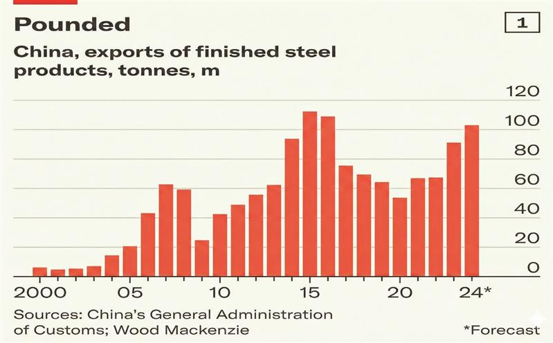 در واکنش به این عدم توازن، چین استراتژی صادراتی خود را بهطور تهاجمی فعال کرده است. صادرات محصولات نهایی فولاد که پس از سال ۲۰۱۵ روندی نزولی داشت، در سال ۲۰۲۴ بار دیگر به مرز ۱۰۰ میلیون تن نزدیک شد. همزمان، صادرات محصولات نیمهتمام نیز در هفتماهه نخست ۲۰۲۵ رشدی بیسابقه معادل ۳۲۰ درصد را تجربه کرده است؛ اقدامی که امکان دور زدن محدودیتهای تجاری و حفظ فعالیت واحدهای تولیدی را فراهم میکند.